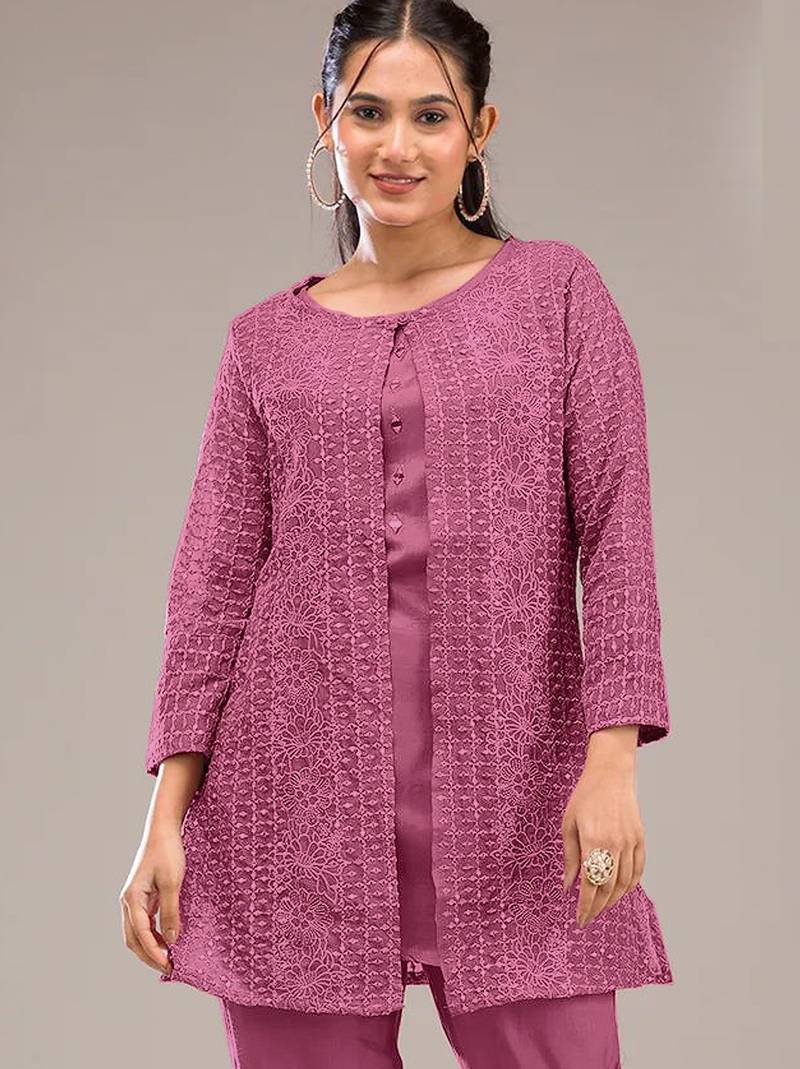 | • | Kameez | : | Color- Pink / Fabric- Georgette |