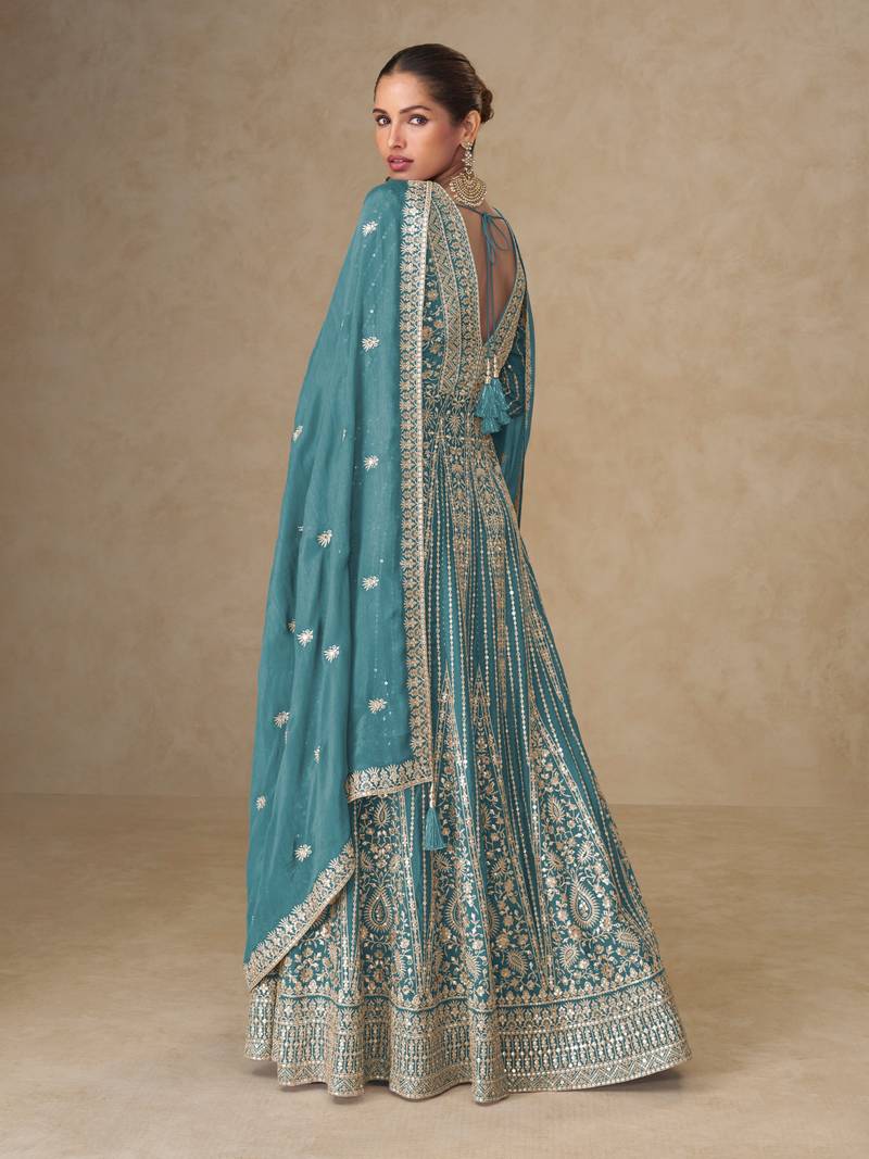 | Product Name | Sky Embroidered Chinon Free Size Stitched Anarkali Suit | |