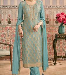 Sky embroidered viscose semi-stitched pakistani salwar suit semi stitched