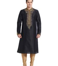 Black art silk straight embroidery kurta for men's