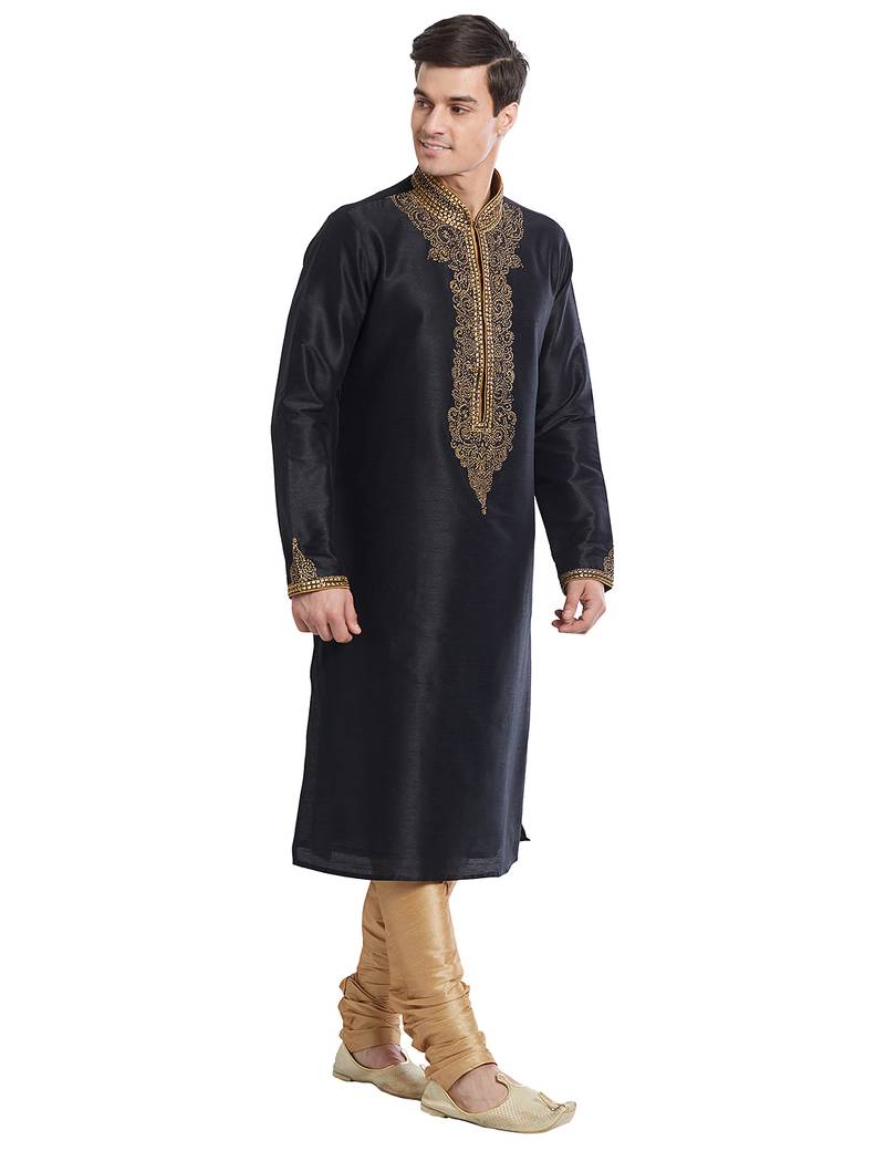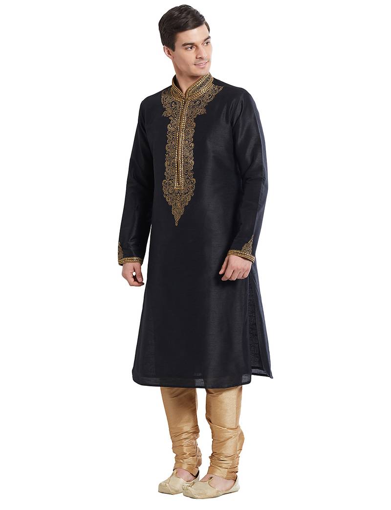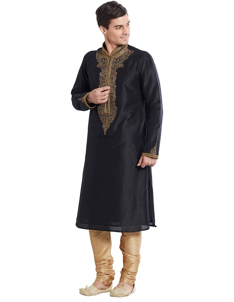 | Product Name | Black Art Silk Straight Embroidery Kurta For Men's | |