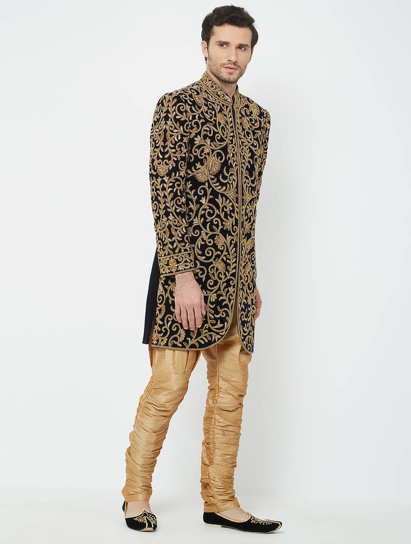 | Product Name | Black Art Silk Straight Embroidery With Handwork Sherwani For Men's | |