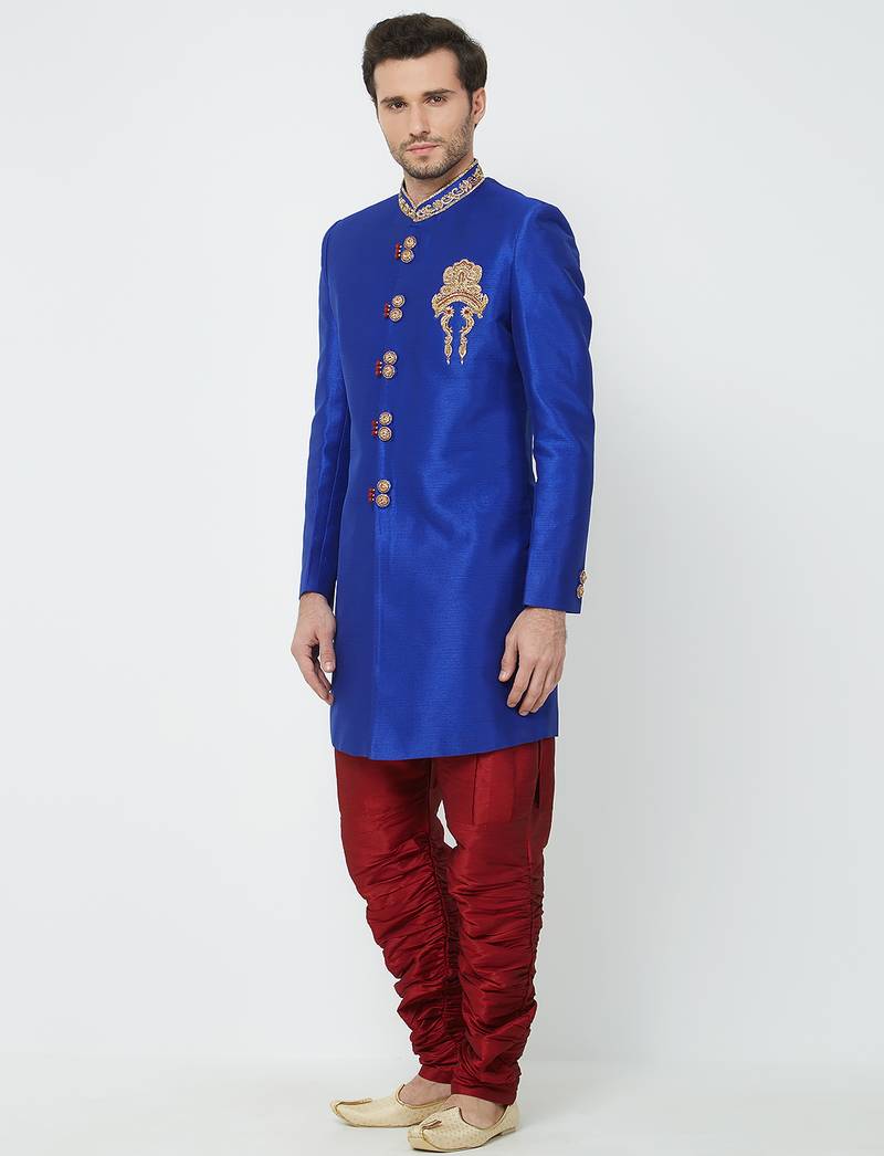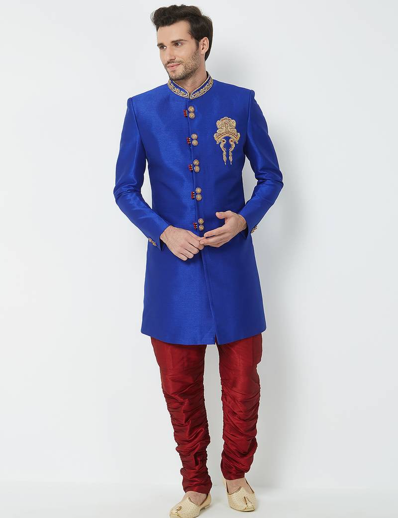 | Product Name | Blue Art Silk Straight Handwork Sherwani For Men's | |