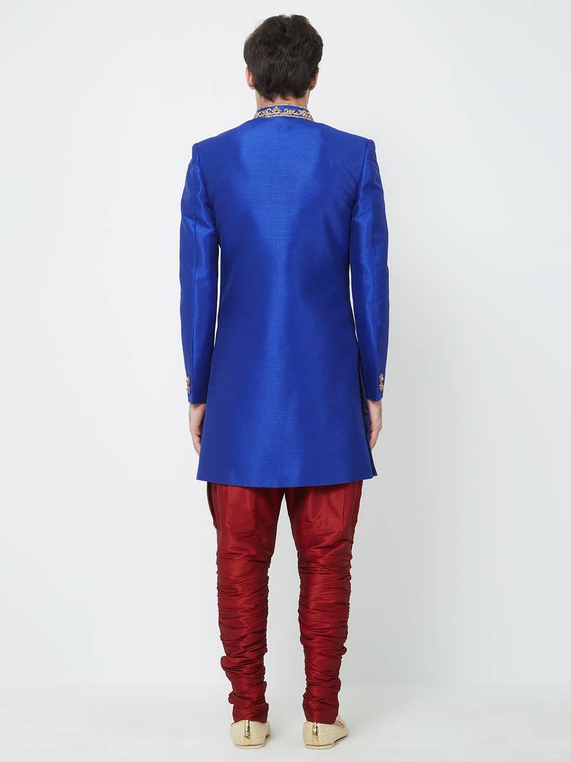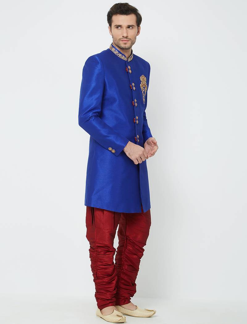 Blue art silk straight handwork sherwani for men's