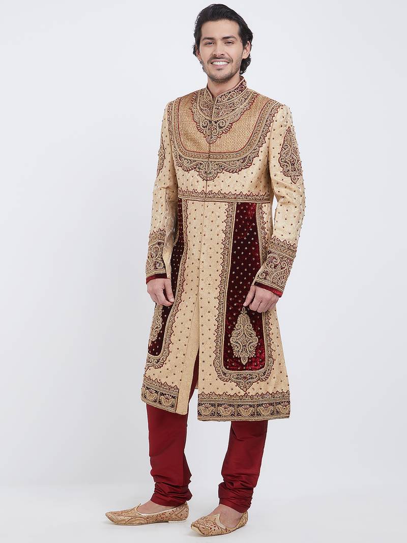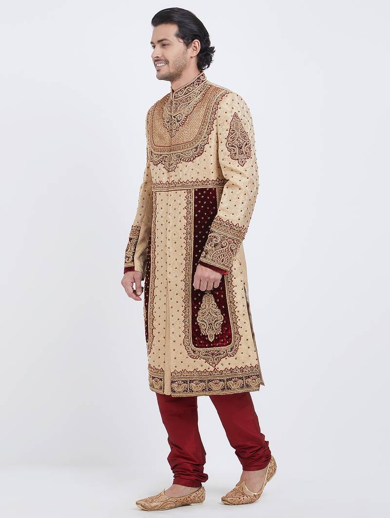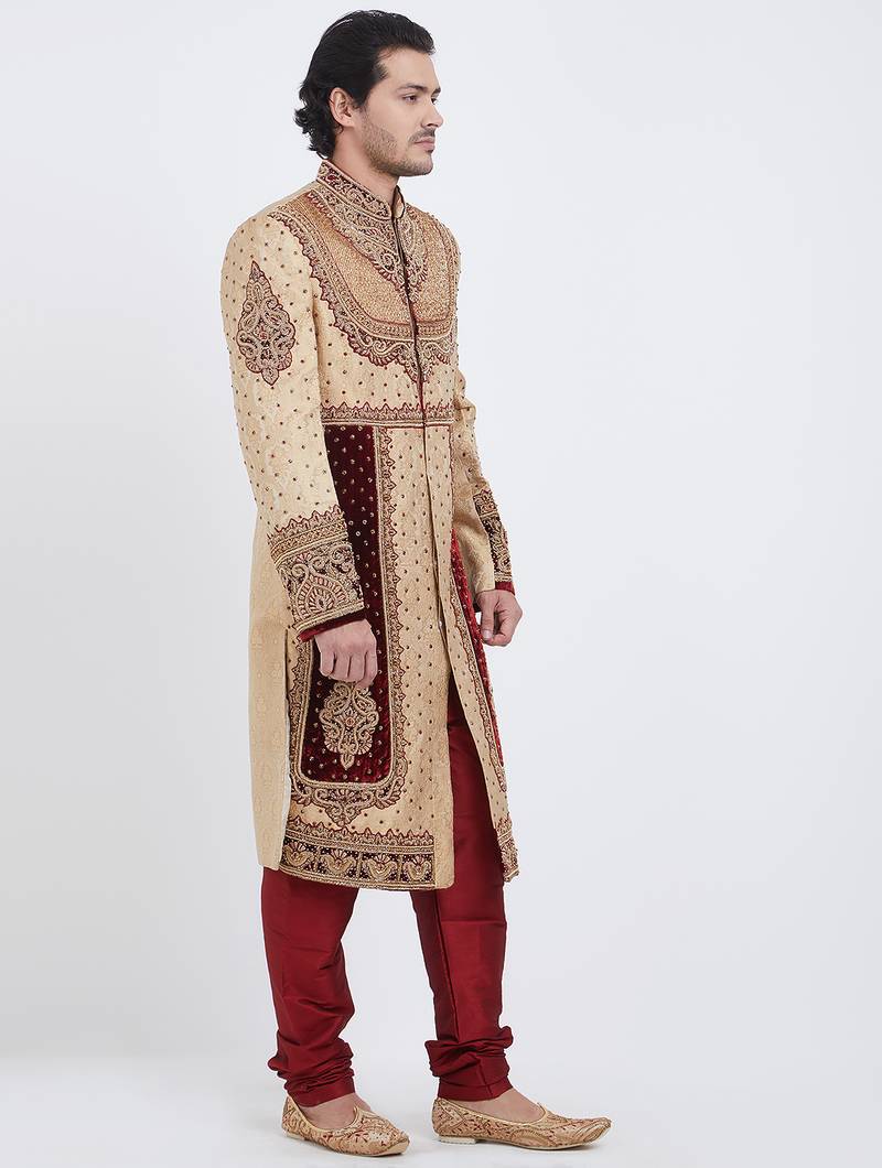 | Product Name | Fawn Brocade Straight Handwork Sherwani For Men's | |