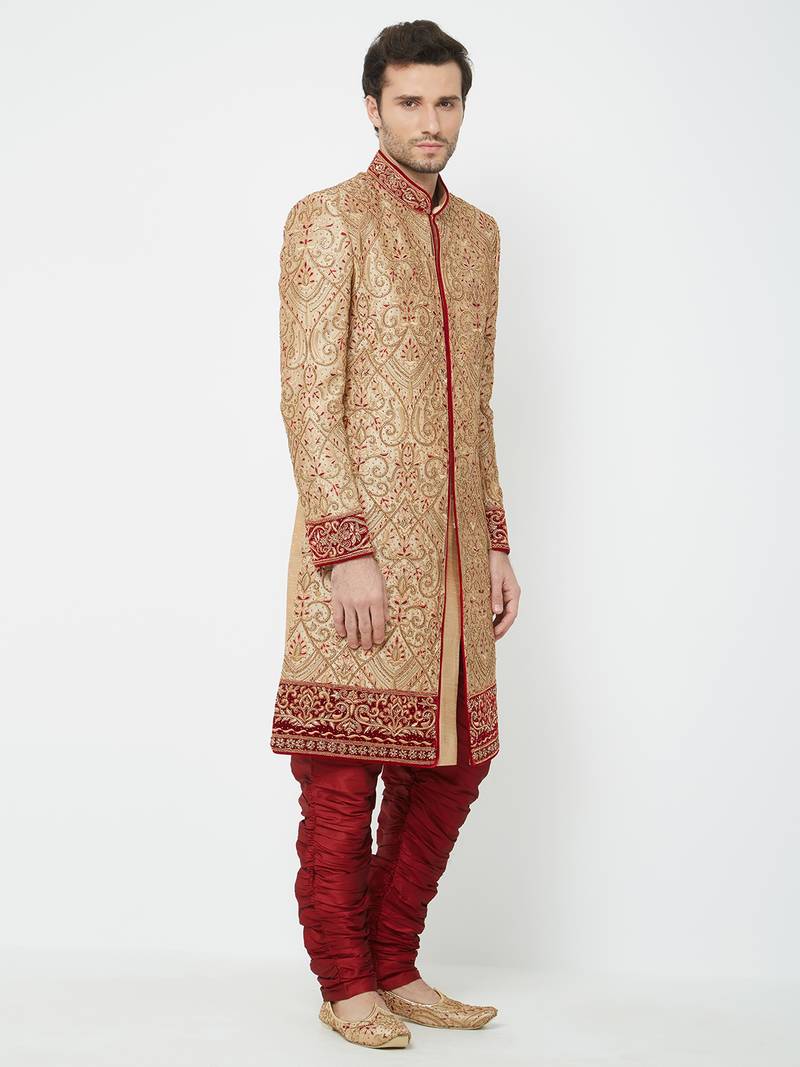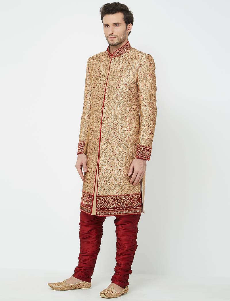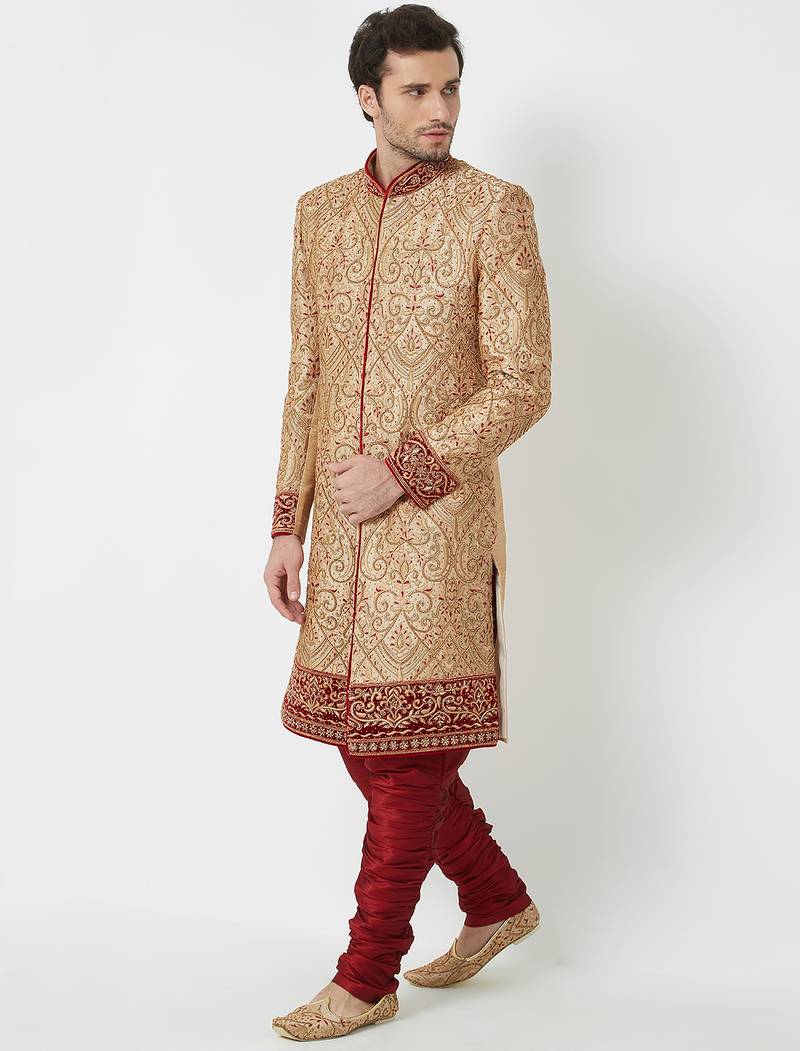 | Product Name | Gold Art Silk Straight Embroidery With Handwork Sherwani For Men's | |