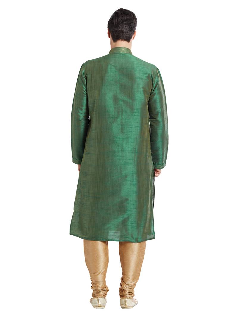 Green art silk straight stitched kurta for men's