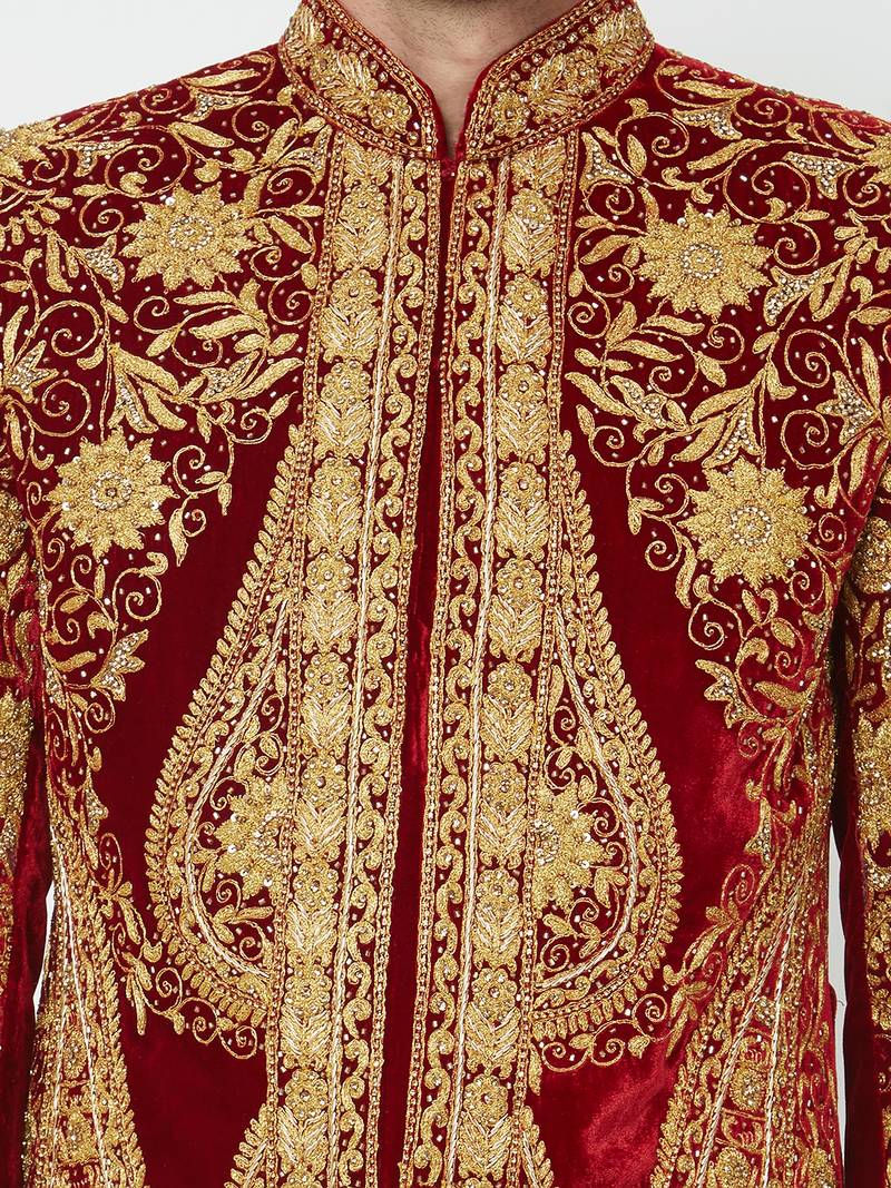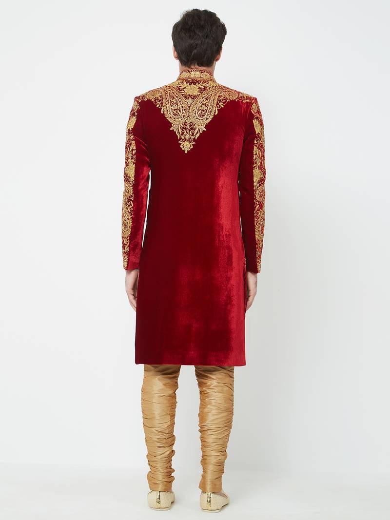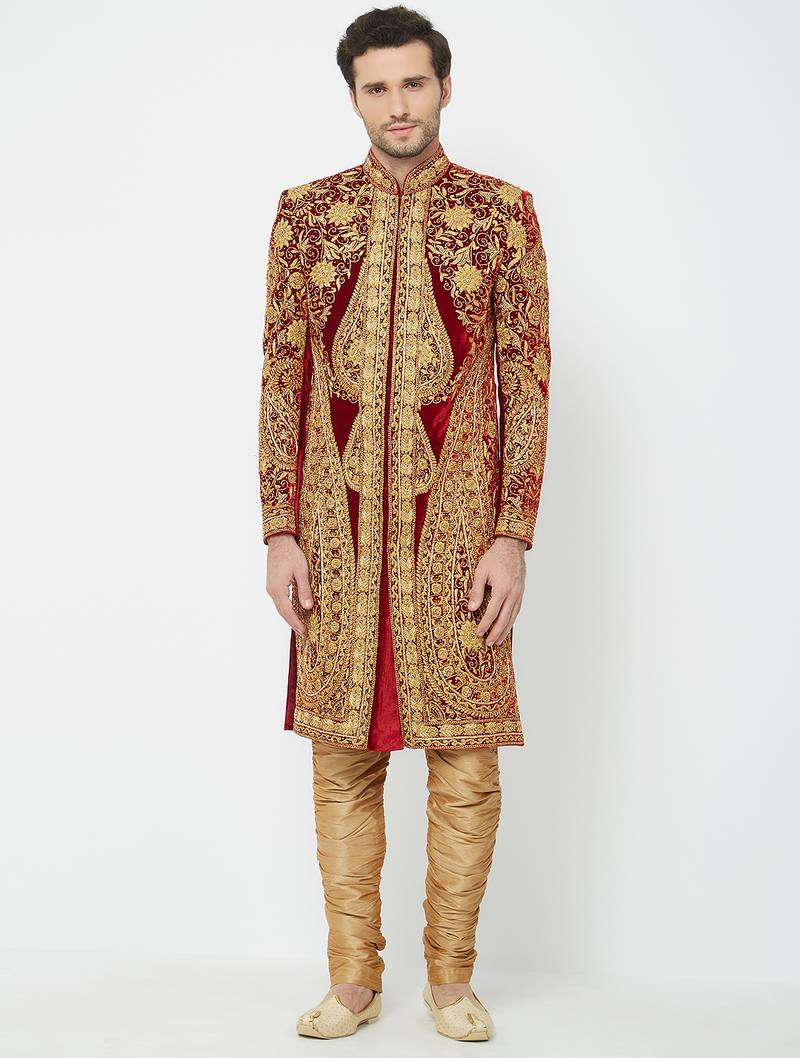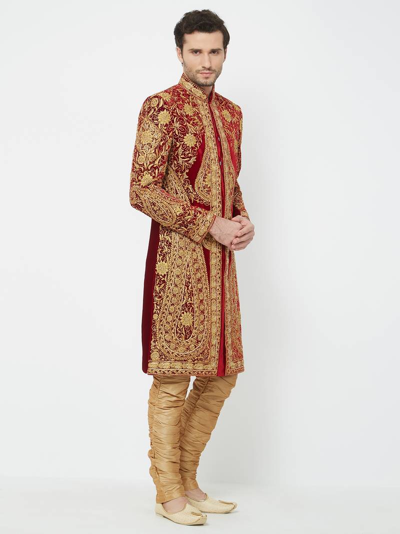| Product Name | Maroon Art Silk Straight Embroidery With Handwork Sherwani For Men's | |