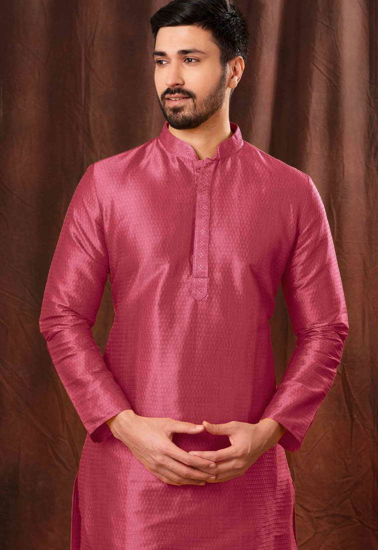 Men's poly jaquard straight rani kurta set