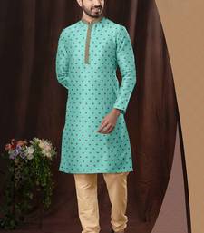 Men's poly jaquard straight sea green kurta set