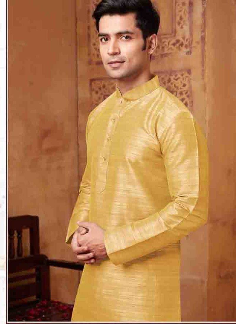 | Product Name | Men's Poly Straight Golden Yellow Kurta Set | |
