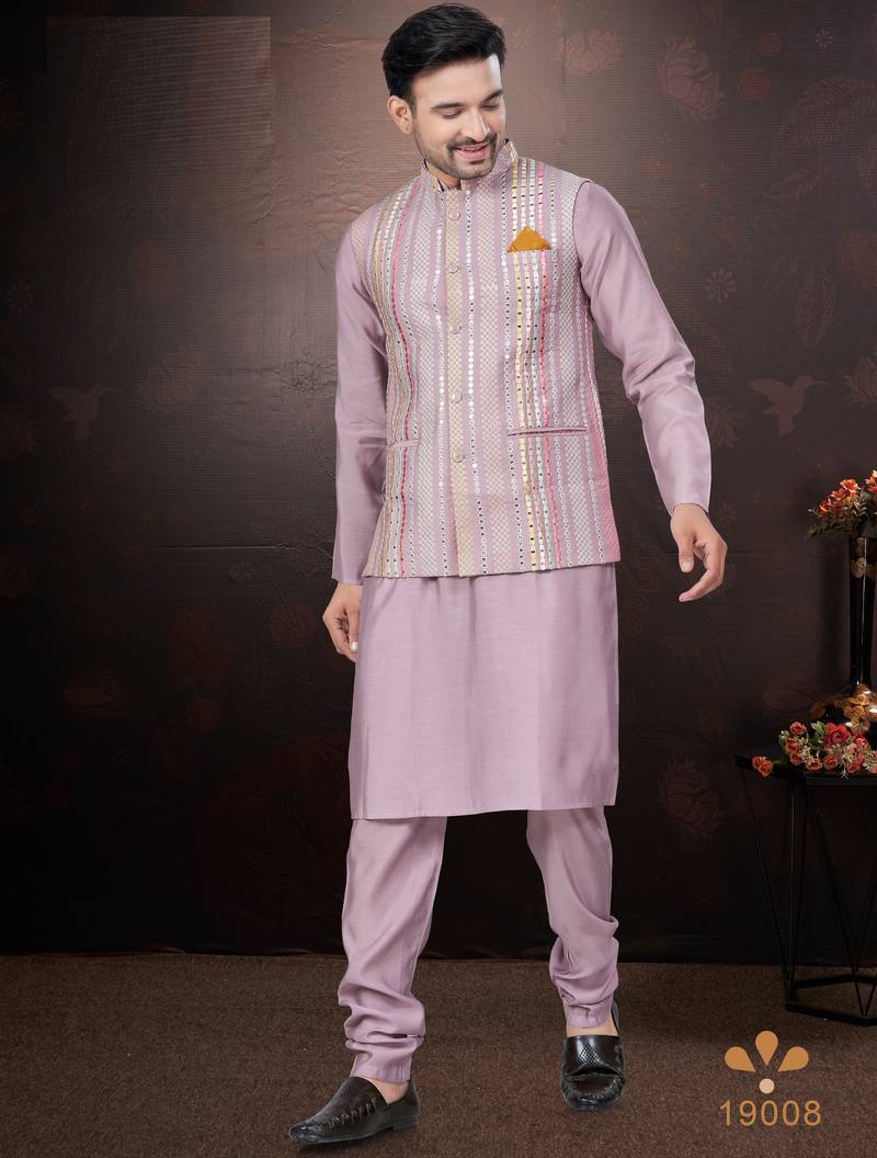 | Product Name | Men's Semi Silk Straight Pink Kurta Set | |
