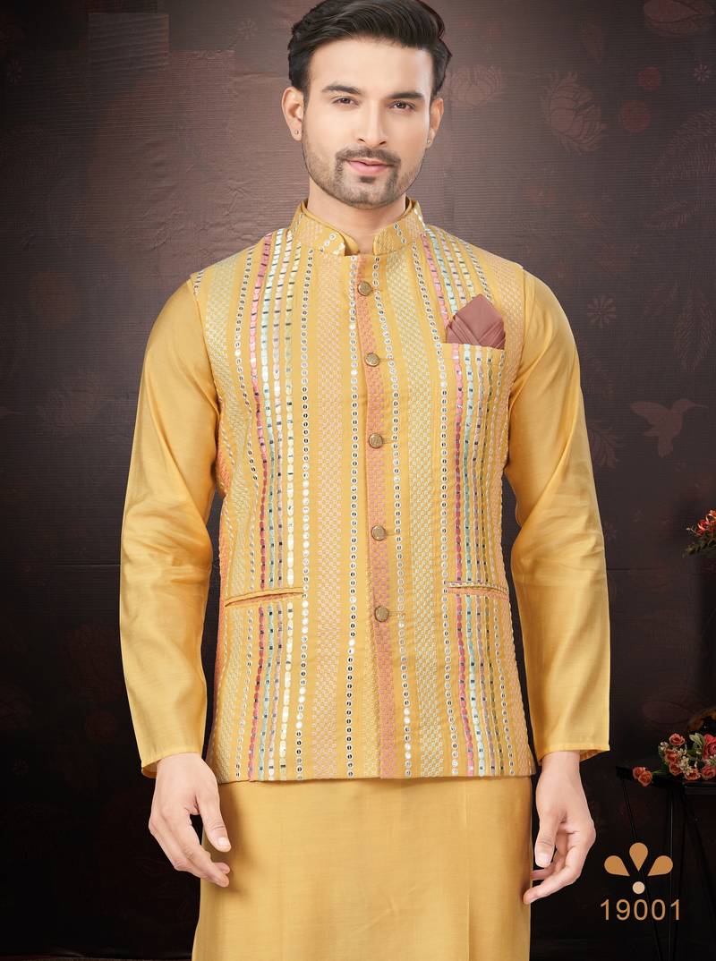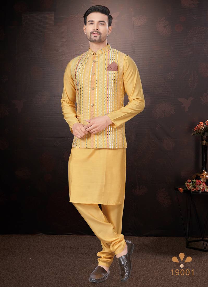 | Product Name | Men's Semi Silk Straight Yellow Kurta Set | |