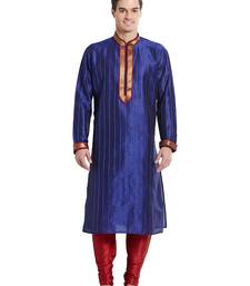 Purple art silk straight stitched kurta for men's