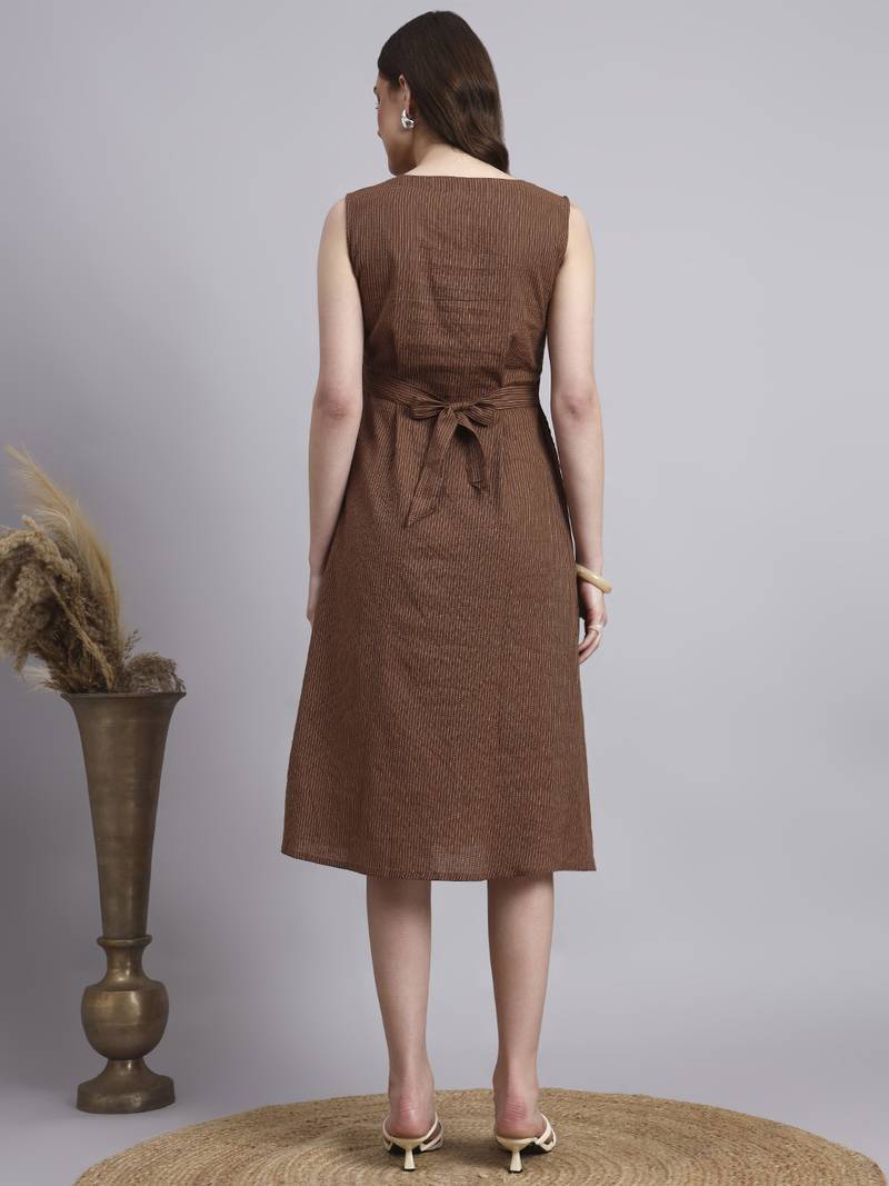 Women brown solid kantha dress