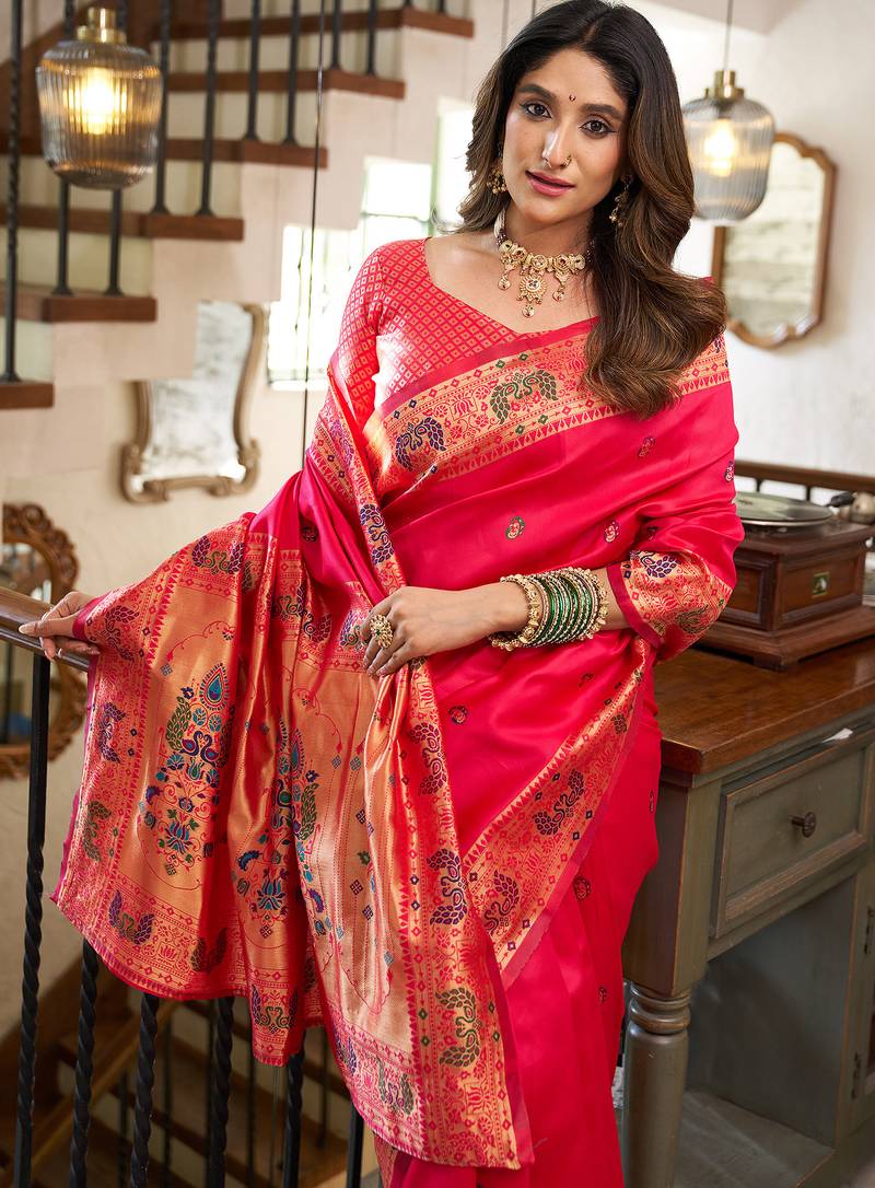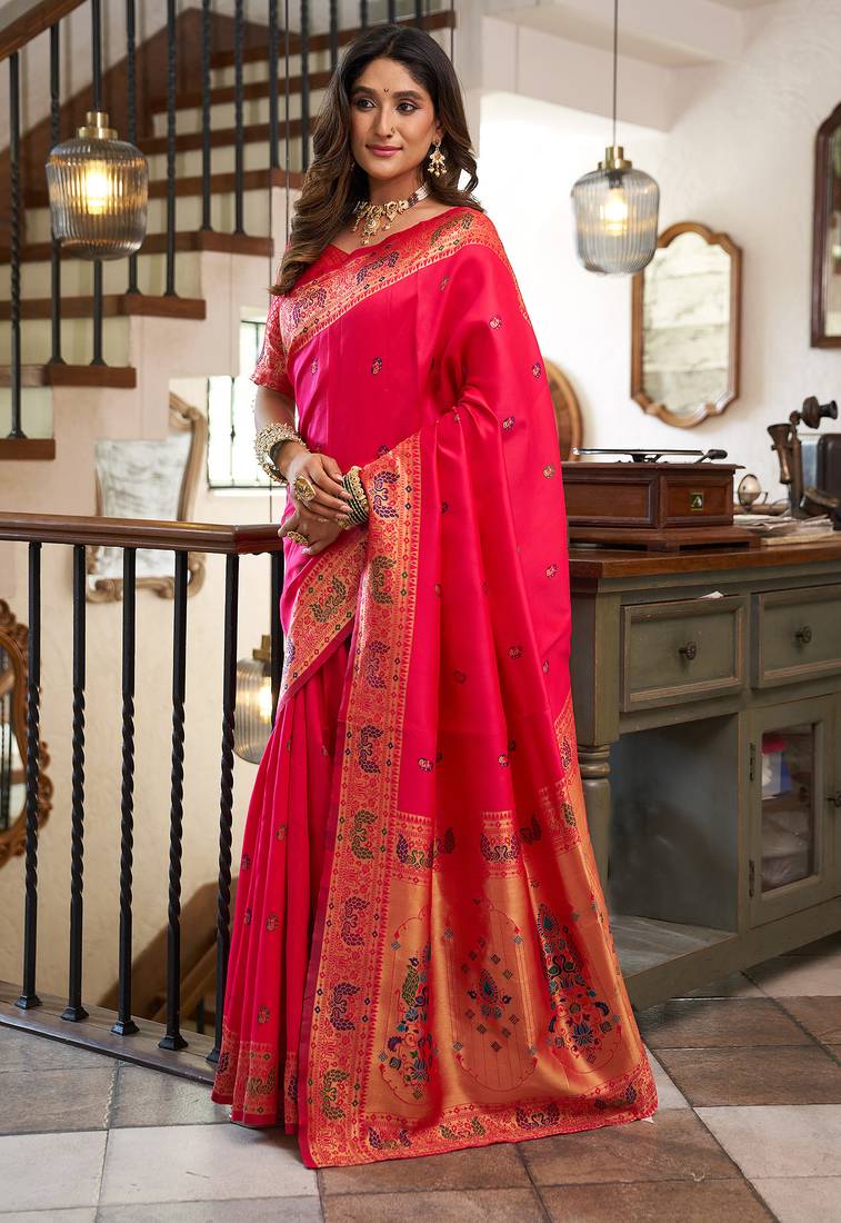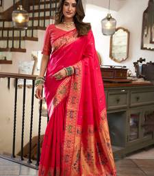 | Product Name | Women Cerise Pink Peacock Motifs Silk Blend Saree | |