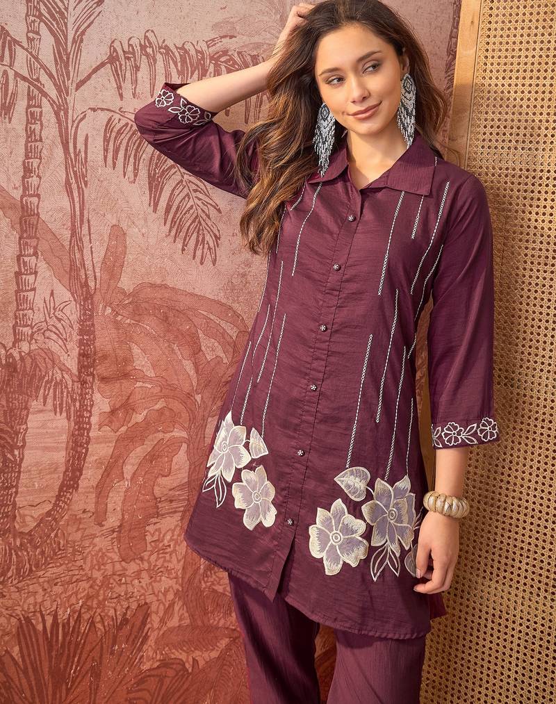 | Product Name | Women Chinon Embroidery Maroon Kruta Set | |