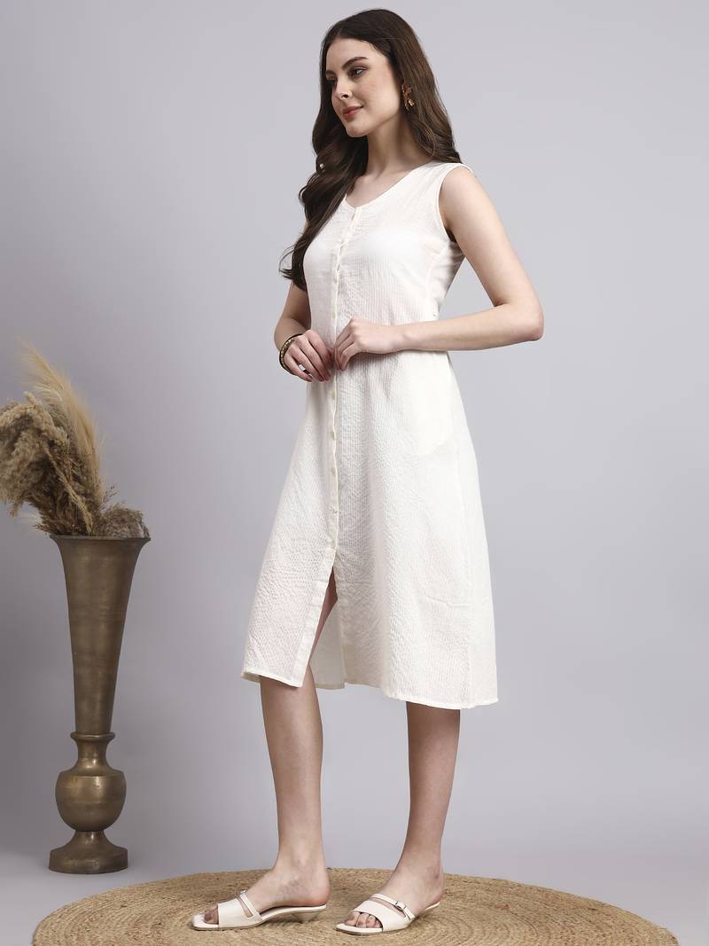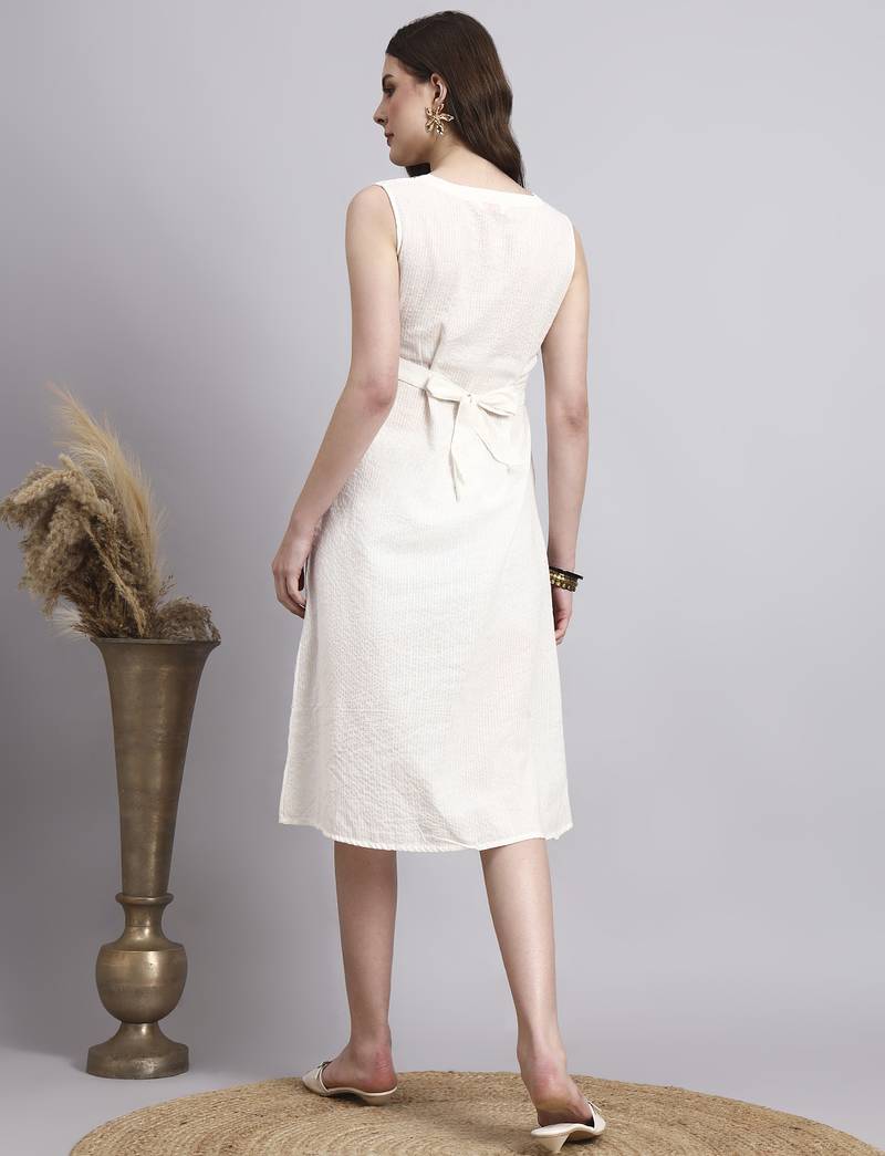 Women cream solid kantha dress stitched