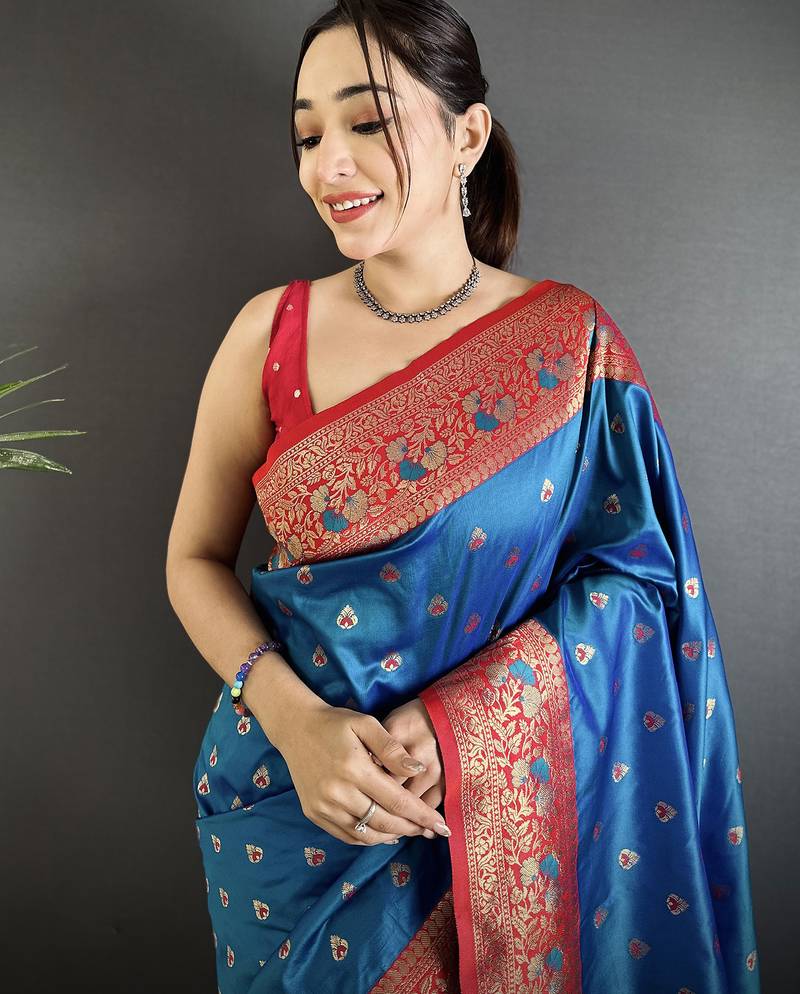 Product Name Intricate Motifs Blue Soft Silk Banarasi Saree