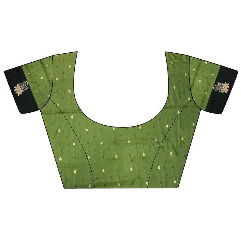 | Product Name | Intricate Zari Weaving Olive Green Soft Silk Blend Dharmavaram Saree | |