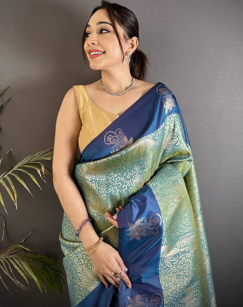 | Product Name | Intricate Zari Weaving Pista Green Soft Silk Blend Dharmavaram Saree | |