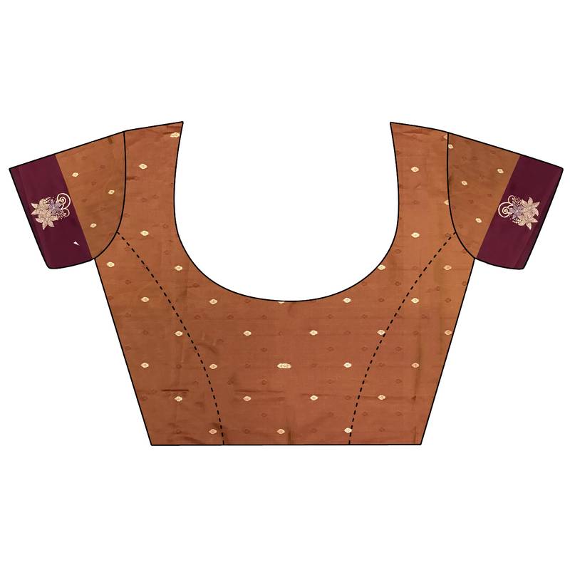 | Product Name | Intricate Zari Weaving Wine Soft Silk Blend Dharmavaram Saree | |