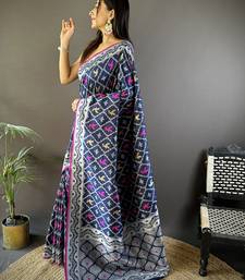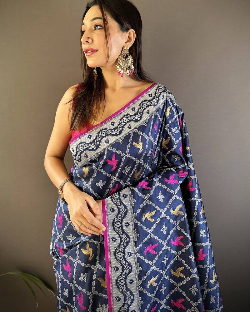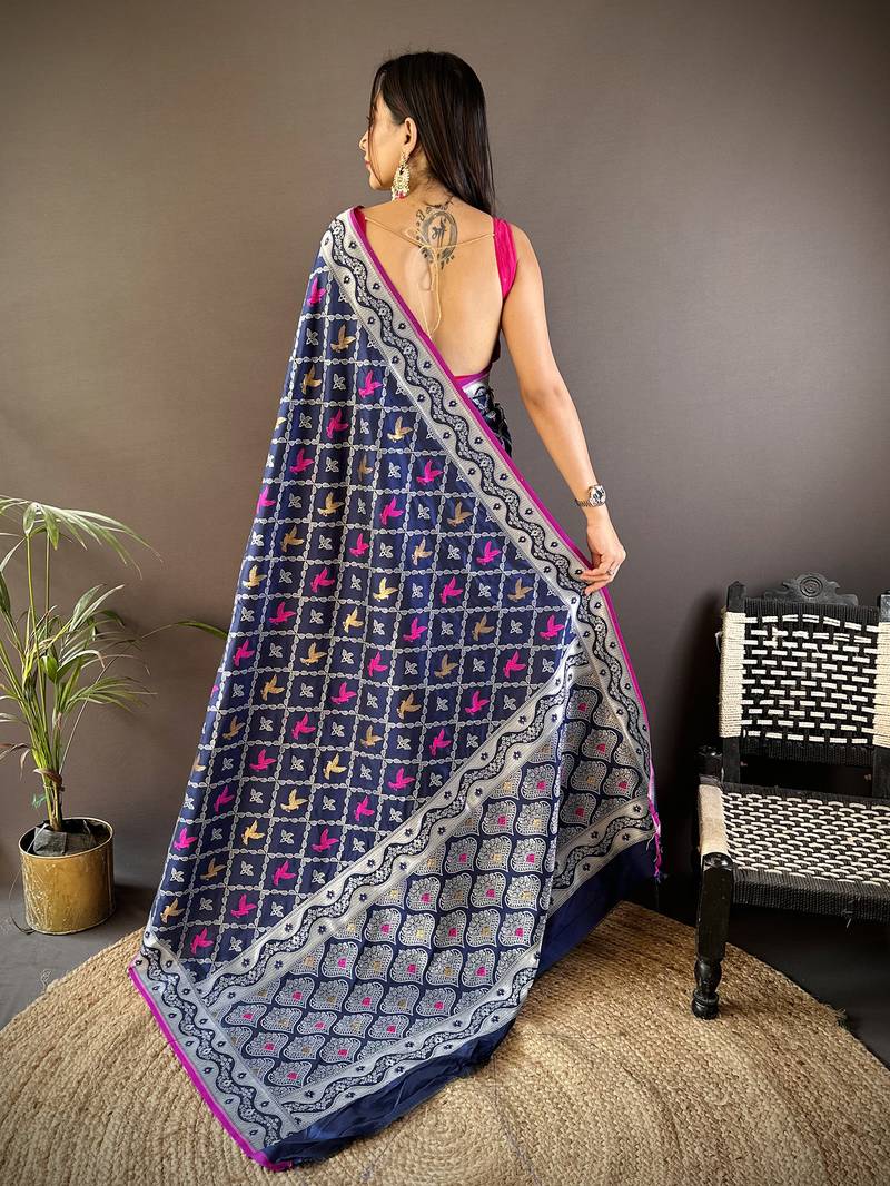 Jacquard woven pattern royal blue lichi soft silk banarasi saree