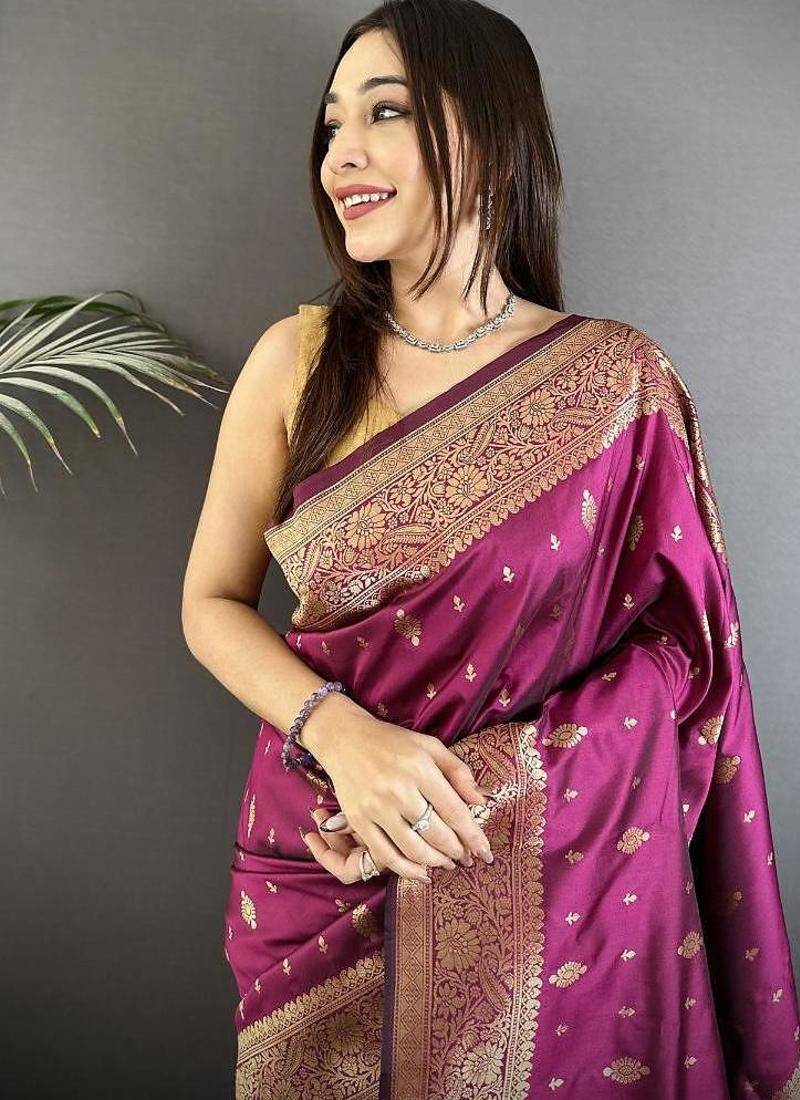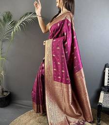 Lichi art silk magenta zari weaving motif banarasi art silk