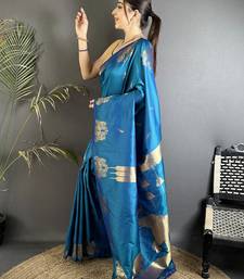 Product Name Motifs Zari Weaving Blue Soft Silk Banarasi Saree