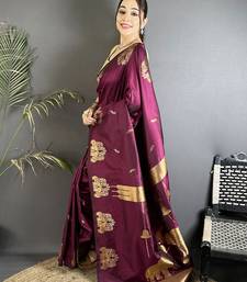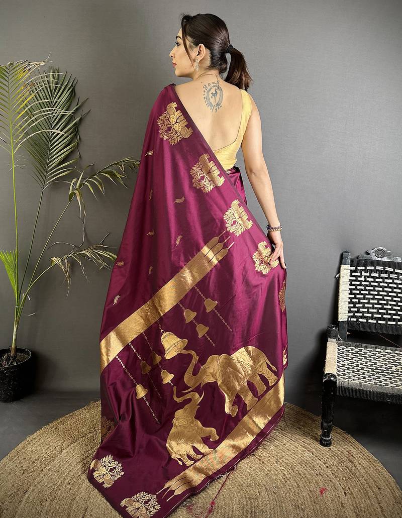 Motifs zari weaving magenta soft silk banarasi saree