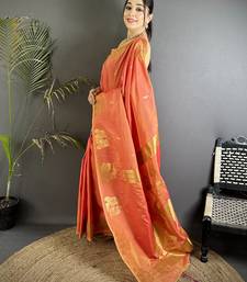 Motifs zari weaving orange soft silk banarasi saree