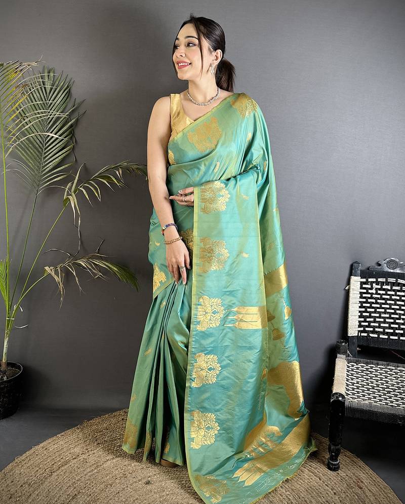 | Product Name | Motifs Zari Weaving Seagreen Soft Silk Banarasi Saree | |