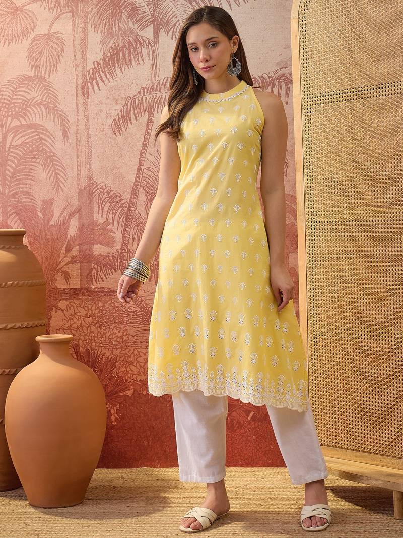 | Product Name | Women Mustard Cotton Embroidery Kurta | |