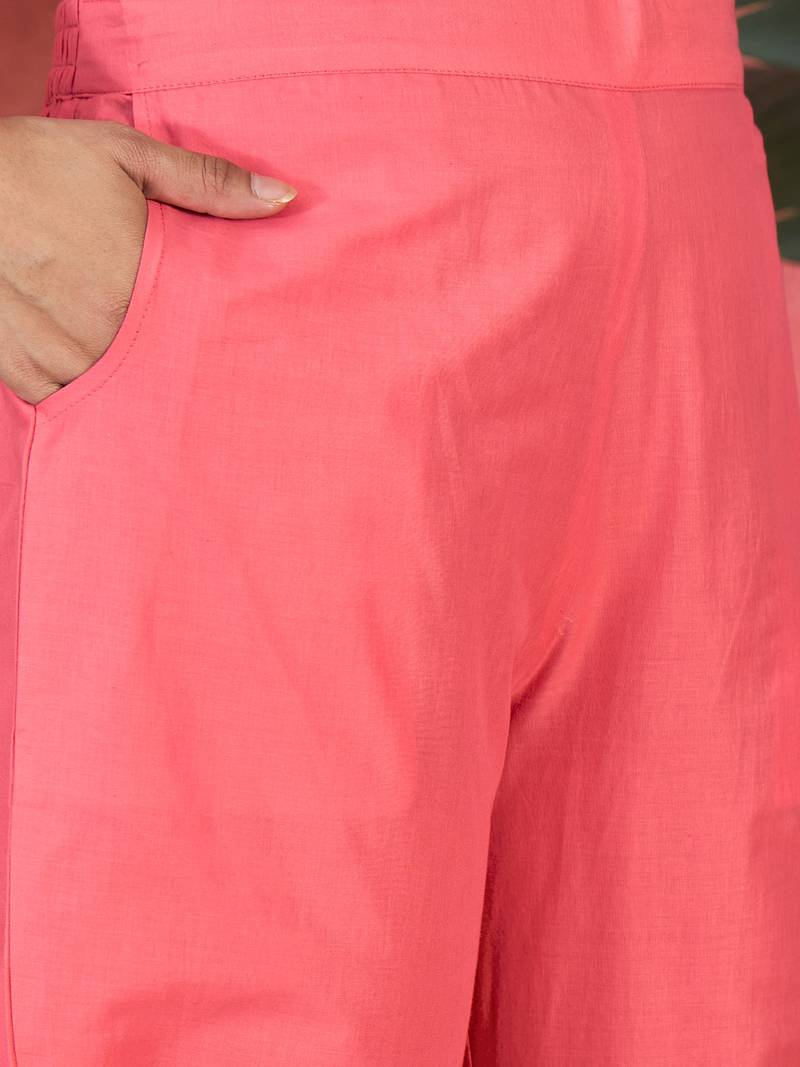 Women pink pure cotton embroidered kurta set