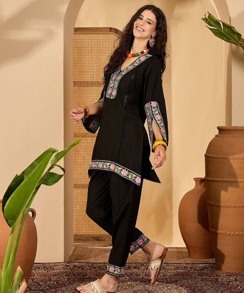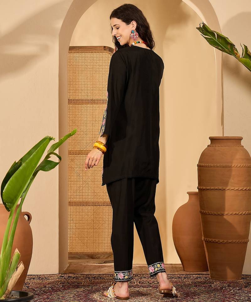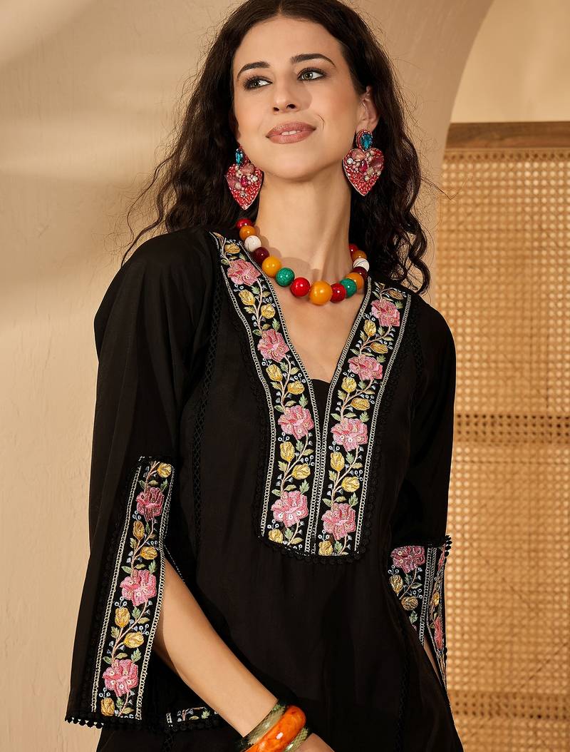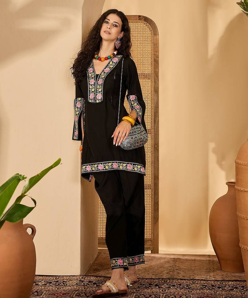 | Product Name | Women Roman Silk Embroidered Black Kruta Set | |