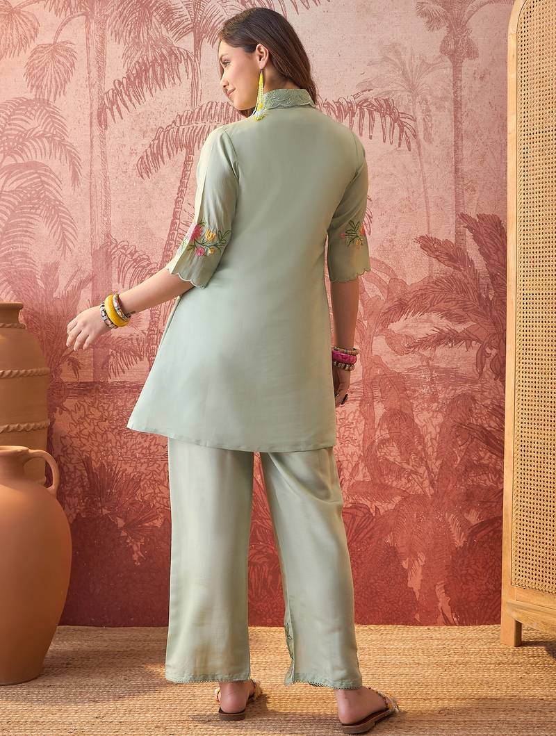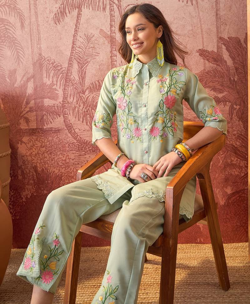 | Product Name | Women Roman Silk Embroidery Green Kruta Set | |