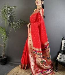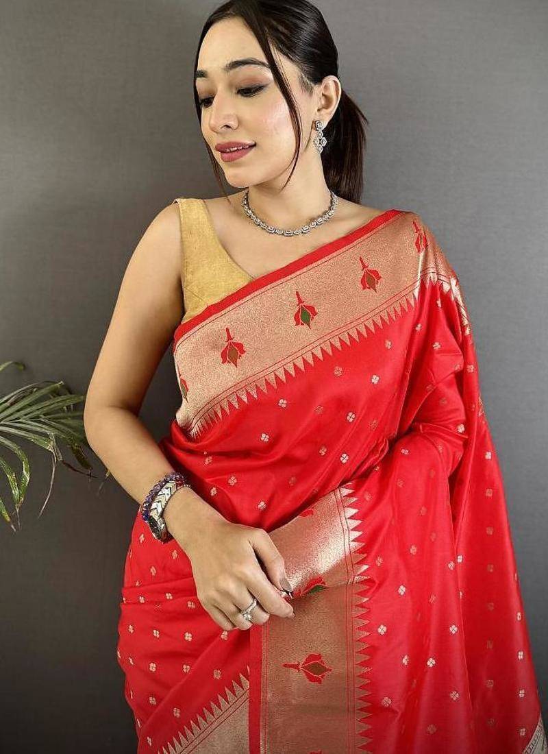 Soft lichi art silk red peacock & floral motifs kanchipuram saree