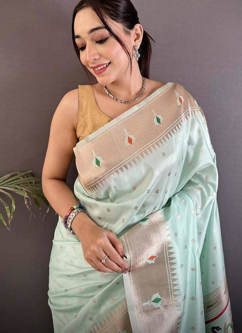 | Product Name | Soft Lichi Art Silk Sea Green Peacock & Floral Motifs Kanchipuram Saree | |
