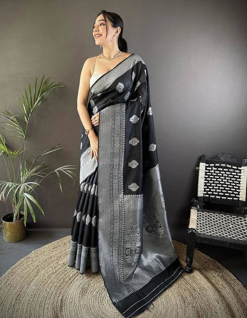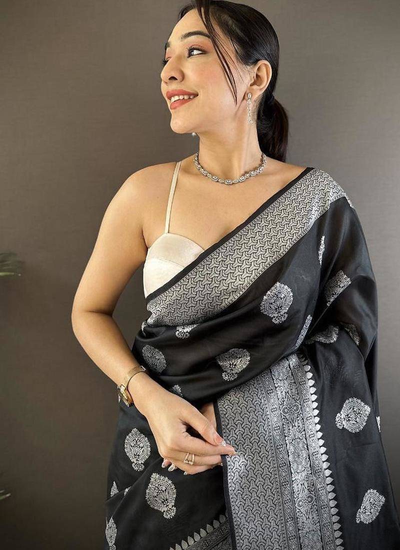 Soft art silk black floral motifs banarasi