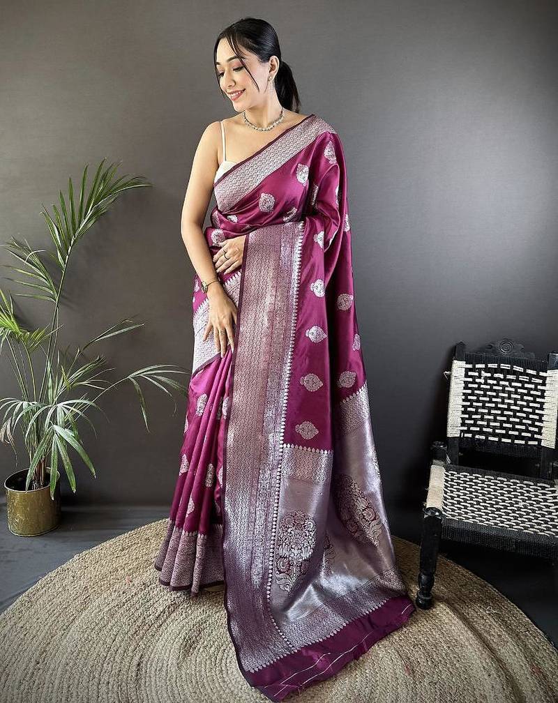 Product Name Soft Art Silk  Magenta  Floral Motifs Banarasi