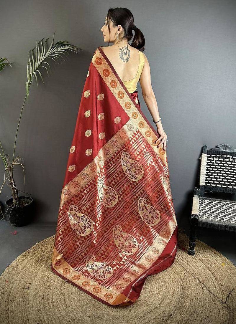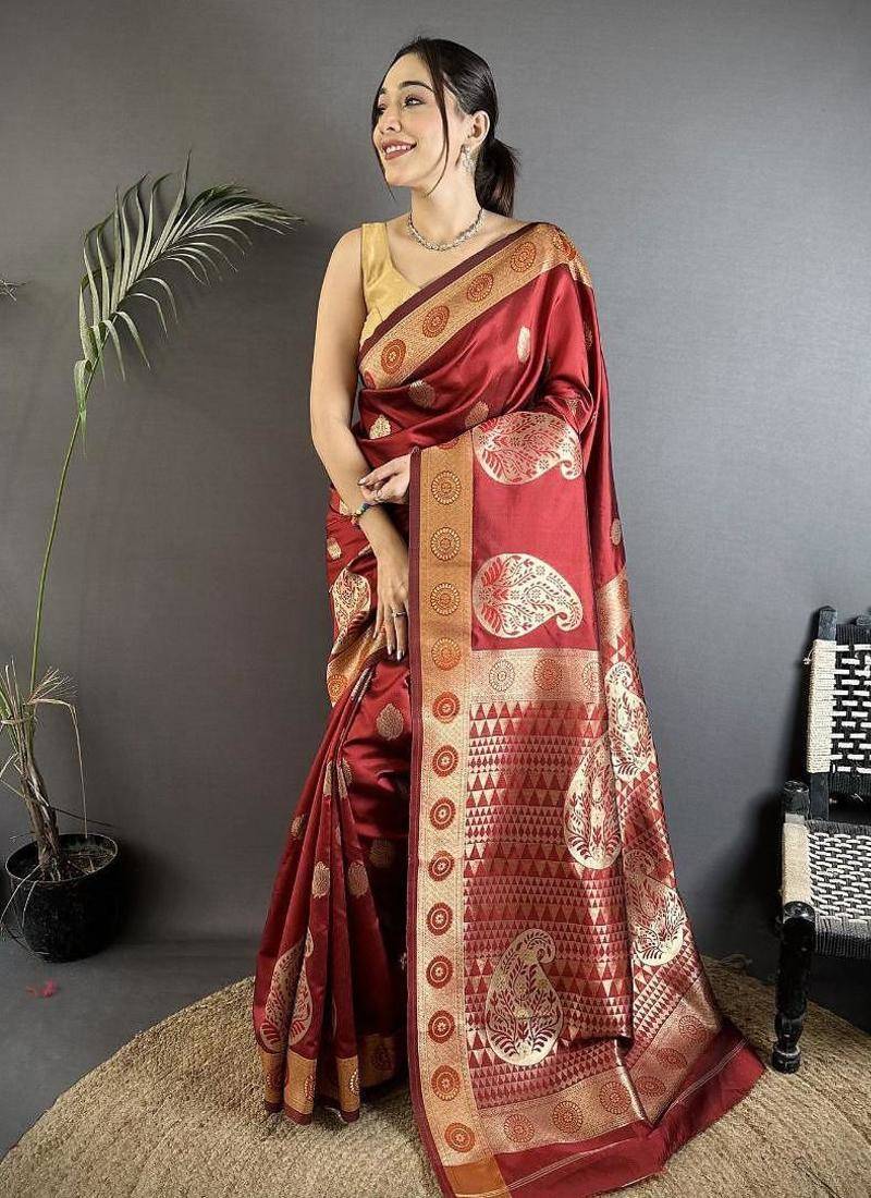 | Product Name | Soft Art Silk Maroon Paisley Banarasi | |