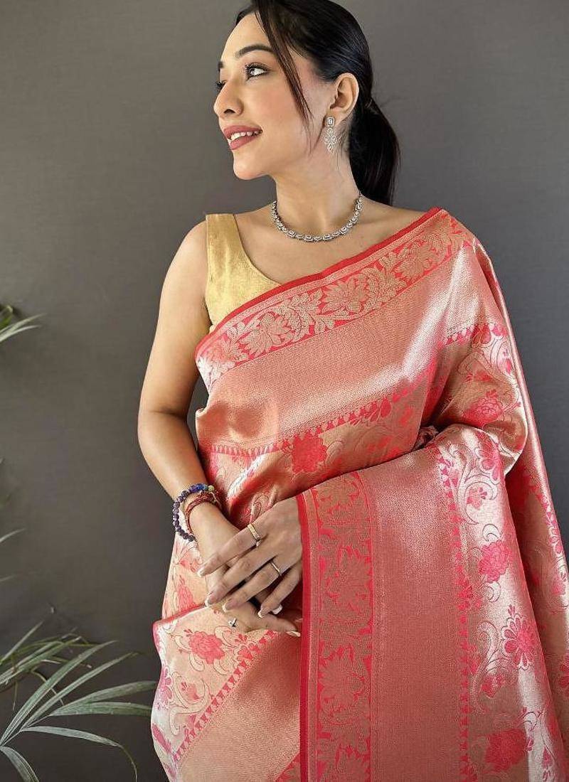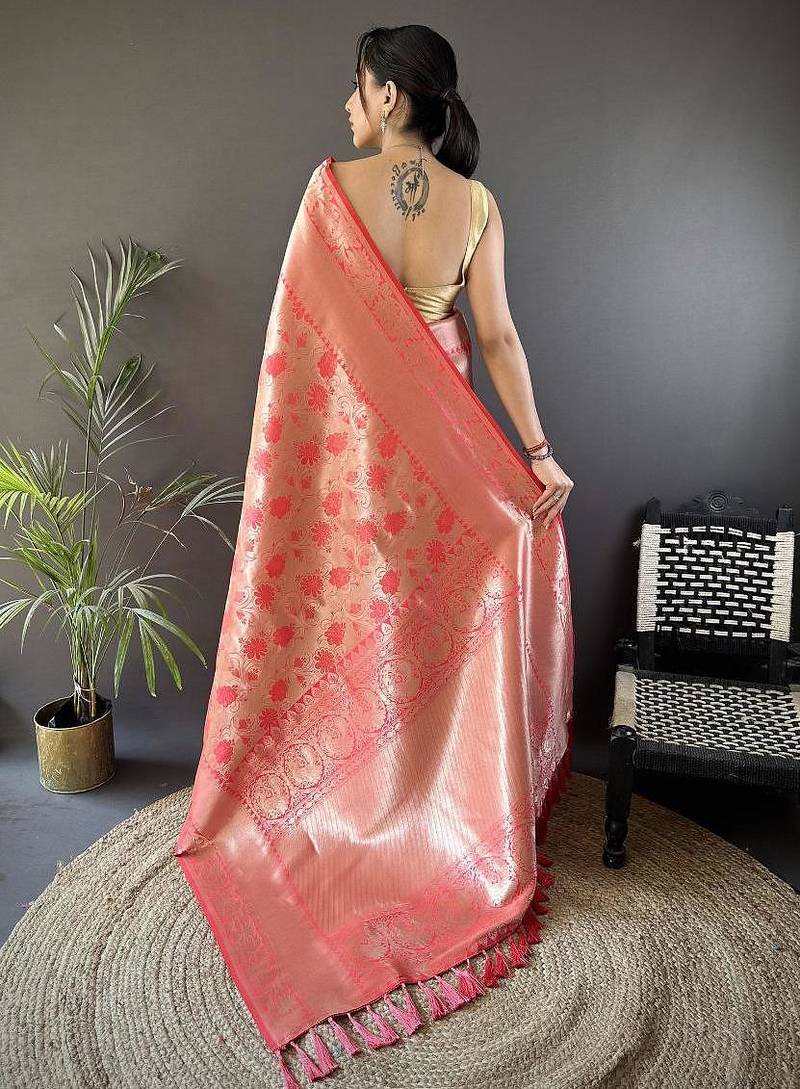 | Product Name | Soft Art Silk Onion Pink Flower Jall Pattern Banarasi | |