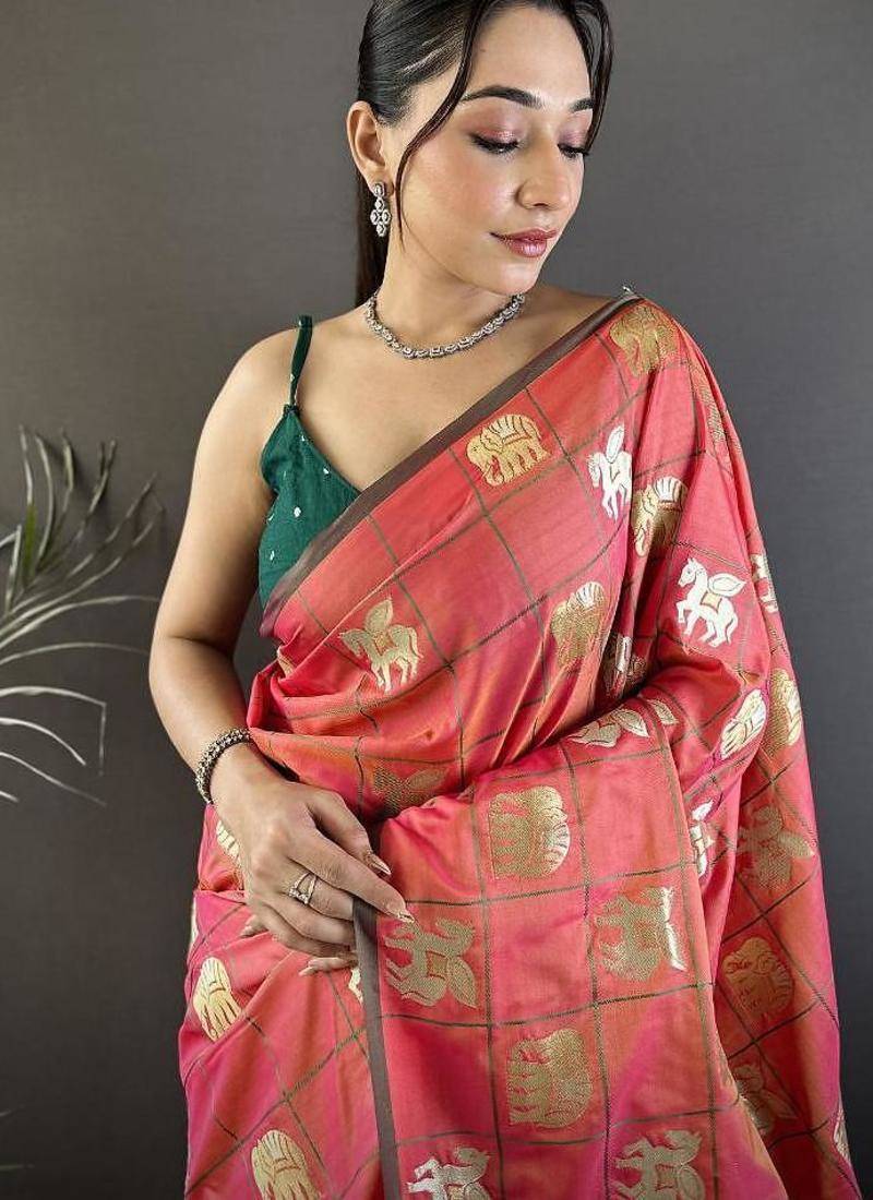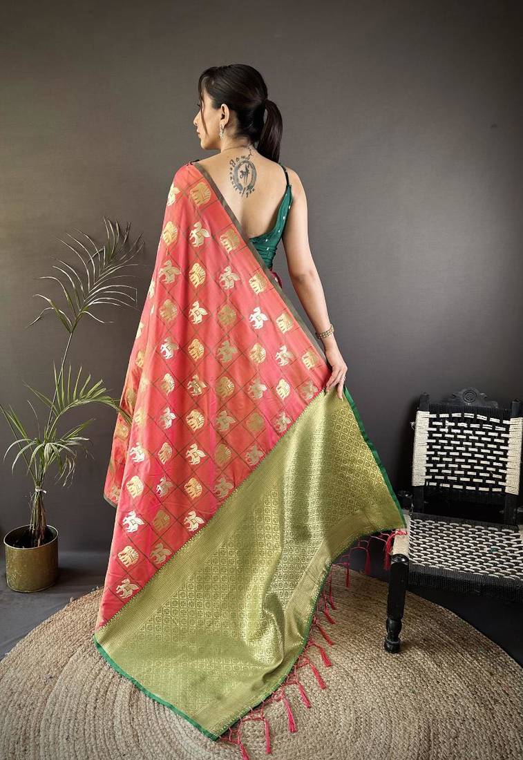 | Product Name | Soft Art Silk Orange Elephant Motif Banarasi Art Silk | |