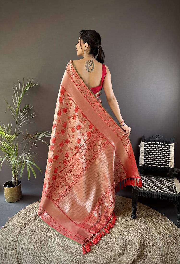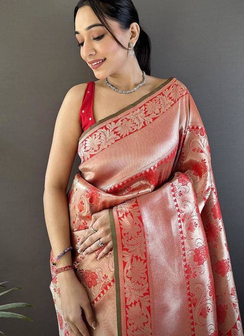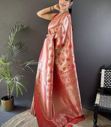 | Product Name | Soft Art Silk Peach Flower Jall Pattern Banarasi | |
