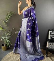 Soft art silk royal blue floral motifs banarasi