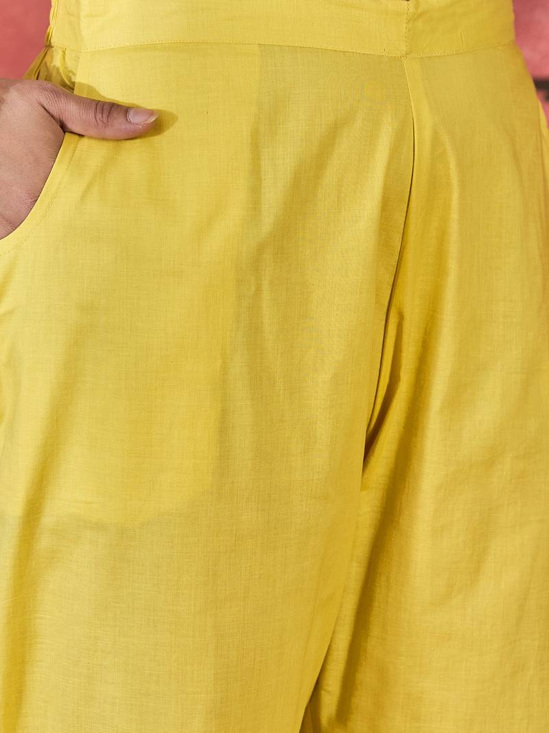 Women yellow pure cotton embroidered kurta set