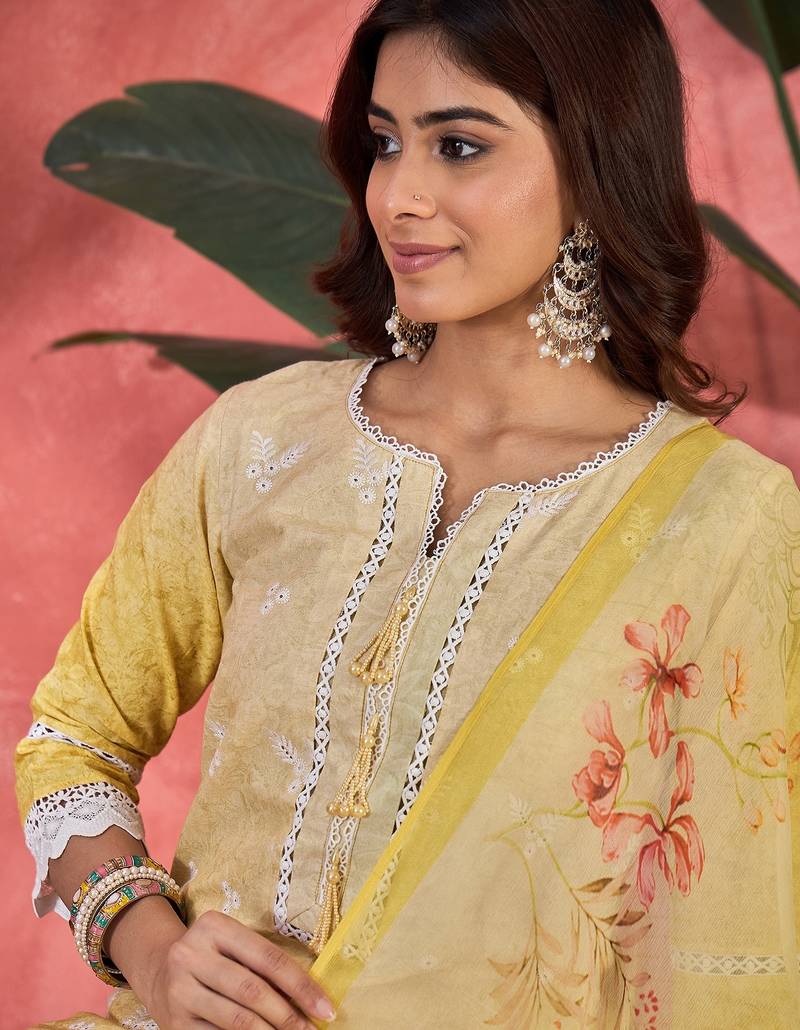 | Product Name | Women Yellow Pure Cotton Embroidered Kurta Set | |