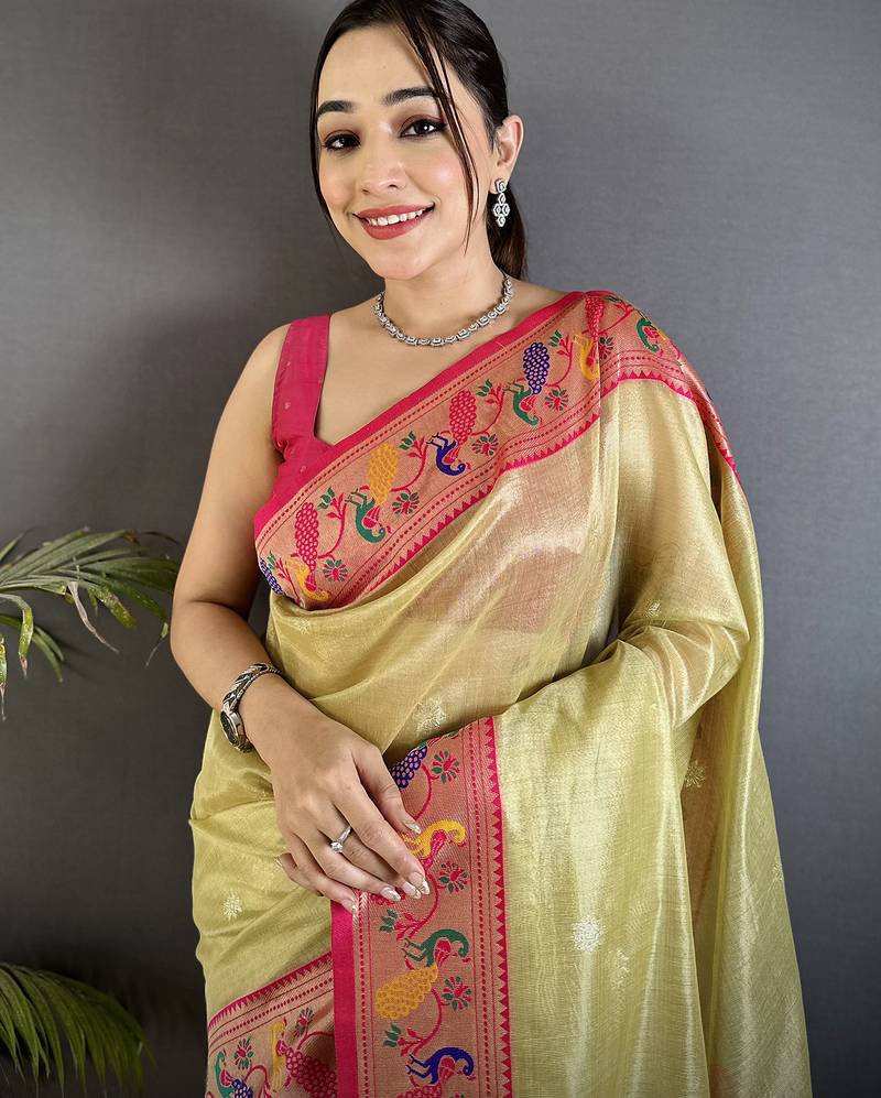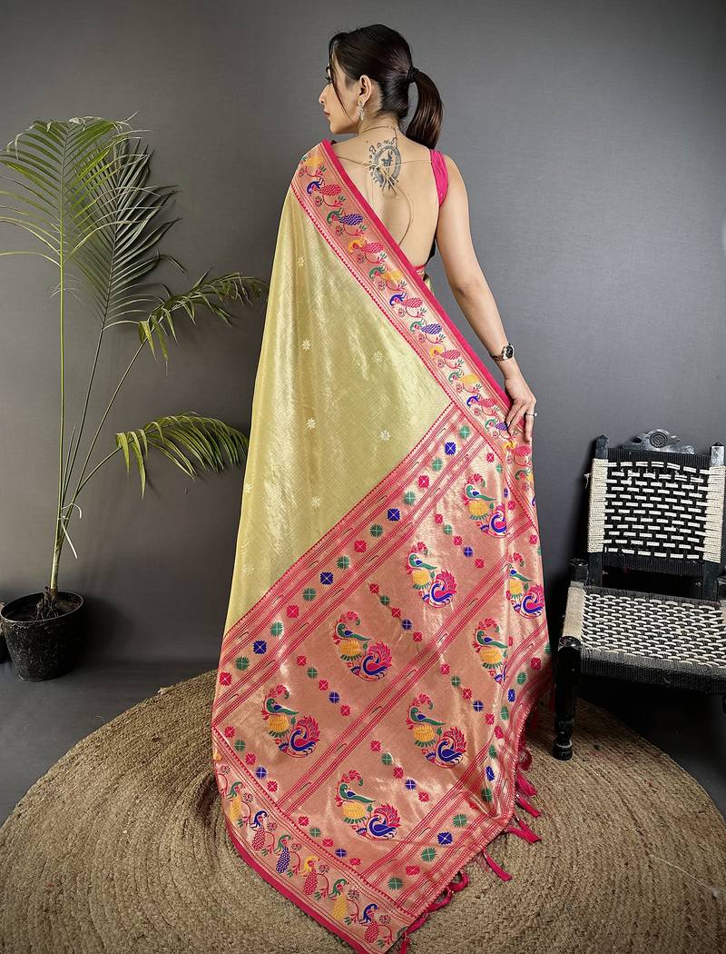 | Product Name | Zari Weaving Golden Beige Tissue Paithani Saree | |