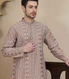 | Product Name | Brown Geometric Print Silk Blend Straight Kurtas For Men | |