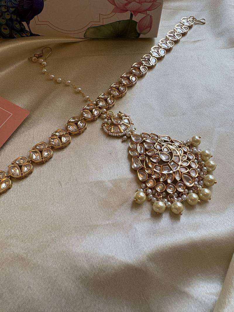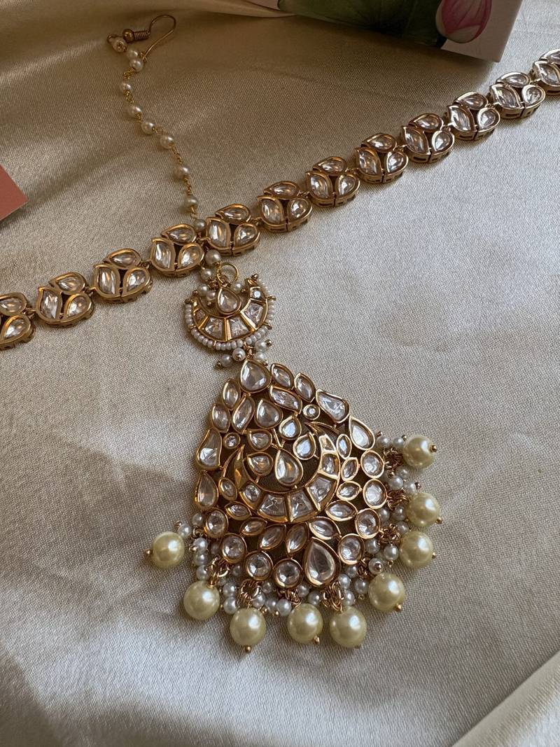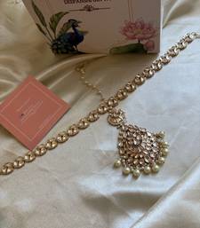 | Product Description | This Floral Motif Polki Mathapatti Features Intricate Polki Work, An Exquisite Gold Finish, And Delicate Pearl Hangingsmaking It The Perfect Accessory To Infuse Any Outfit With Grace And Elegance. Base Material: Brass Includes: One Mathapatti &Nbsp; |
